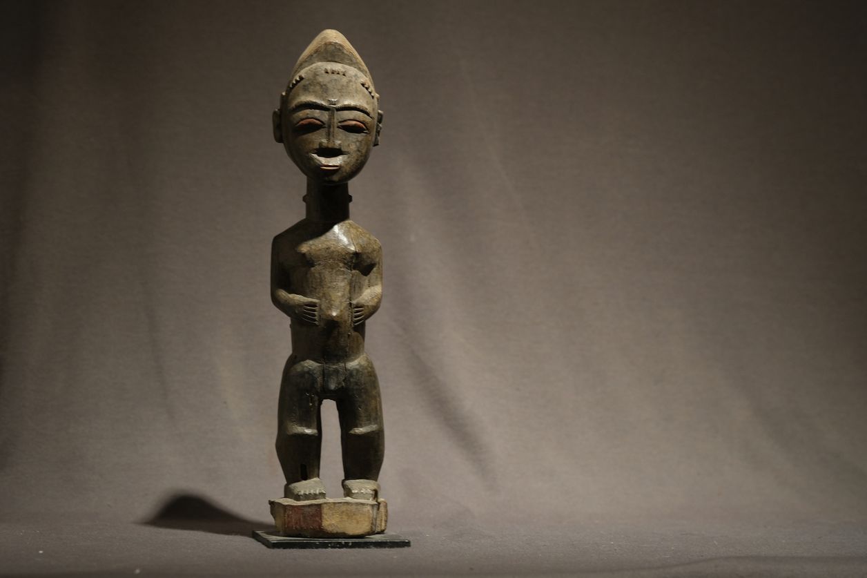 Baule sculptors are widely respected for their technical control and sensitivity to idealized human form. Pieces of this type were typically commissioned for spiritual or protective purposes and reflect both aesthetic refinement and symbolic intent.